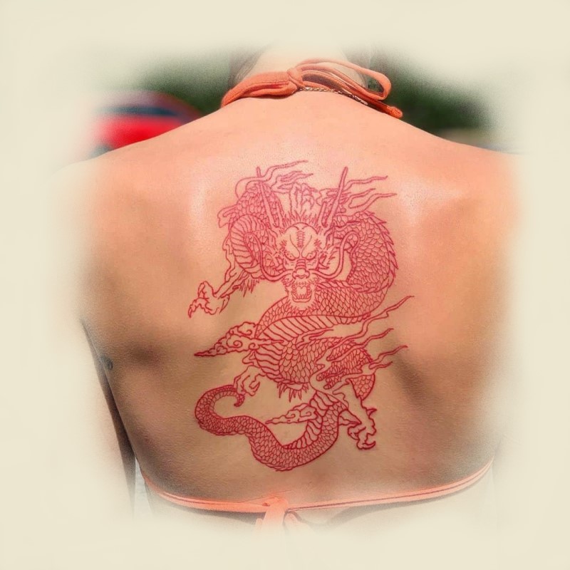 der dækker hele fronten af hendes menneskekrop og er kropsformet.